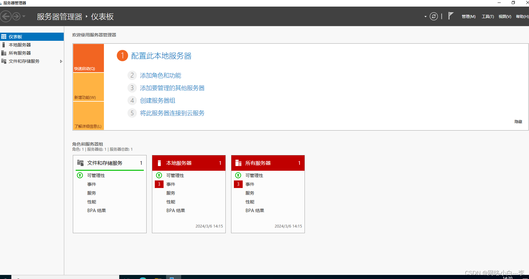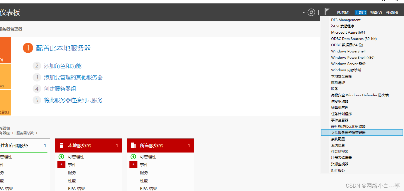 返回服务器打开服务管理器,工具栏打开文件服务资源管理器,如果没有,点击添加角色和功能