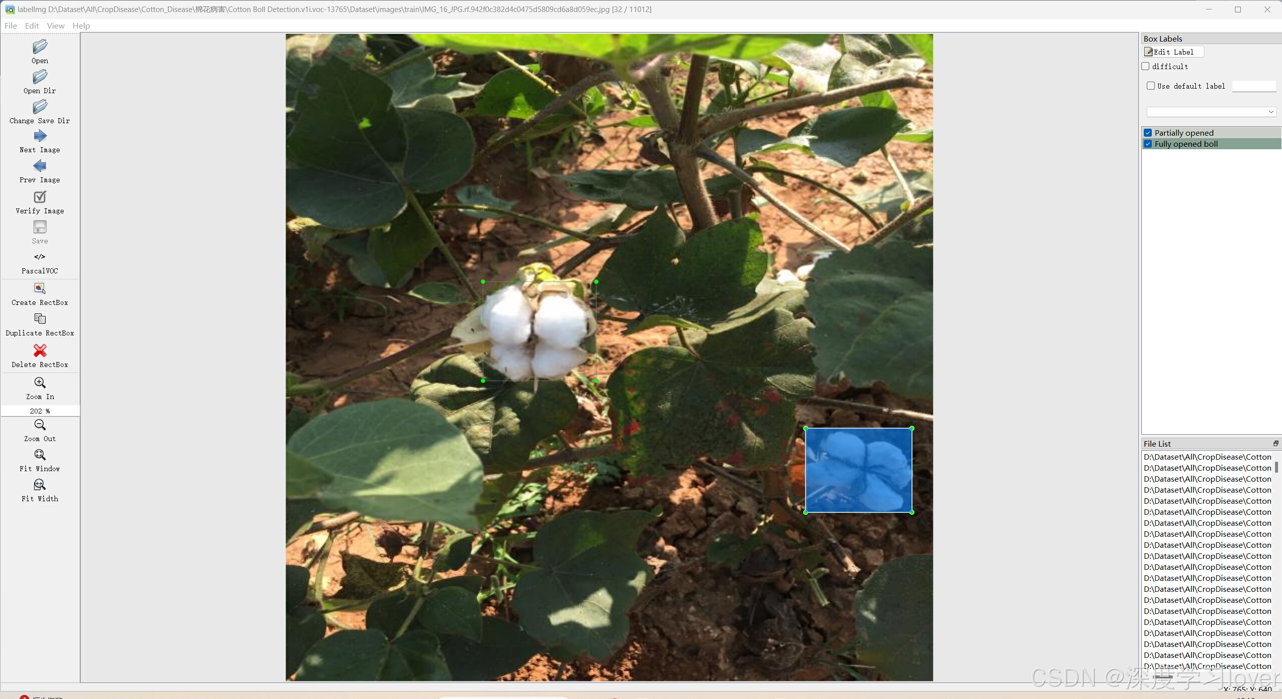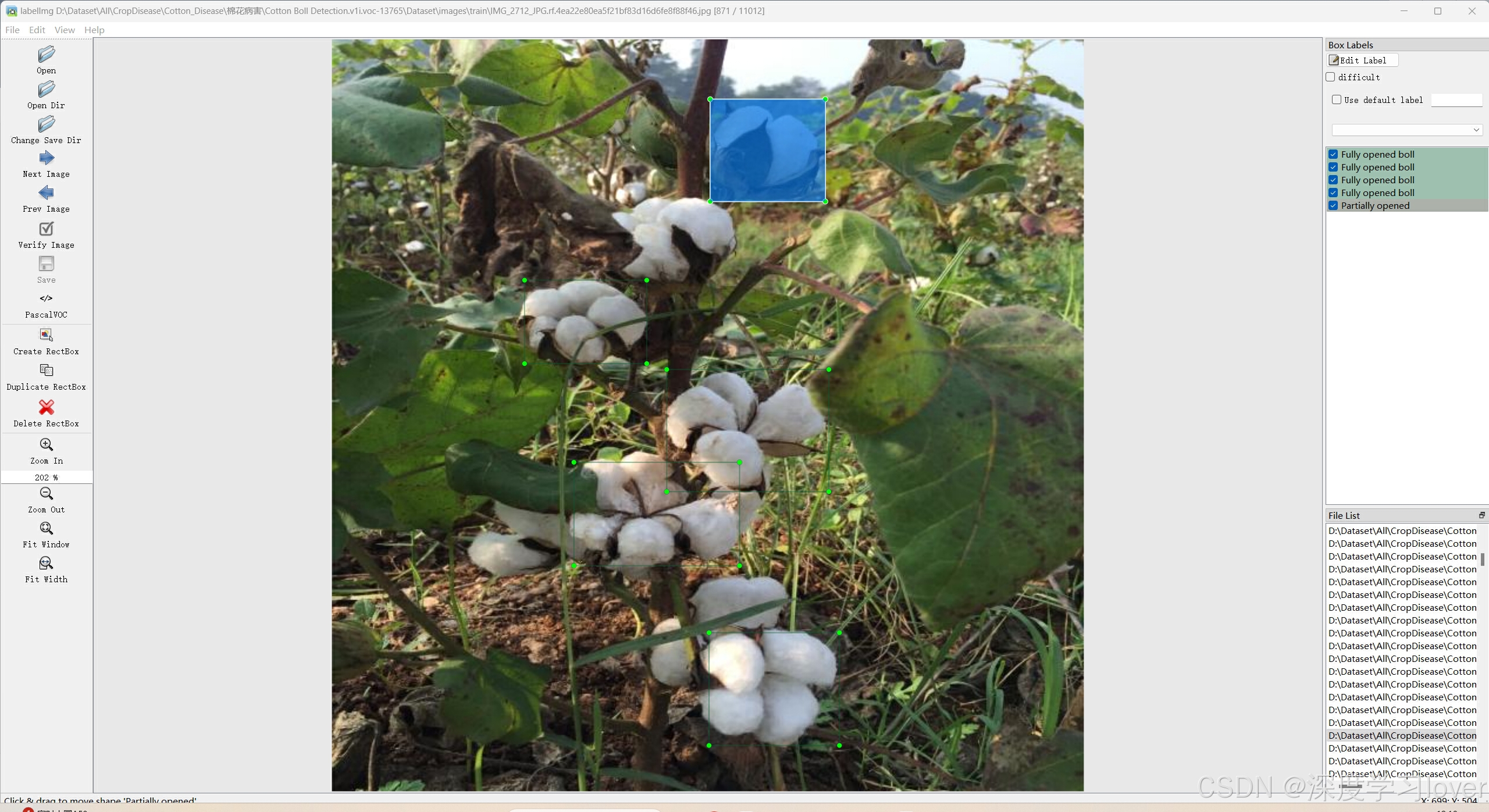 标注类别名称:['Partially opened', 'Fully opened boll', 'Defected boll', 'Flower']