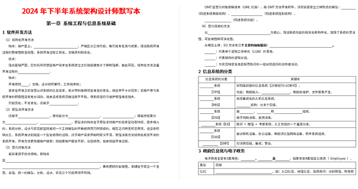 距离2024下半年软考高级系统架构设计师考试仅剩三个月!时间紧迫,单单啃书已经不够了,毕竟是软考高级科目,难度不是那些初、中级可以比拟的。要想短时间速通架构考试,学会抓重点真的很重要,45分说多不多说少不少。这里给大家整理了一份软考高级系统架构设计师重点冲刺资料,快存下吧!