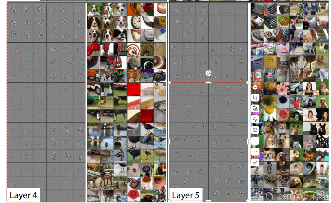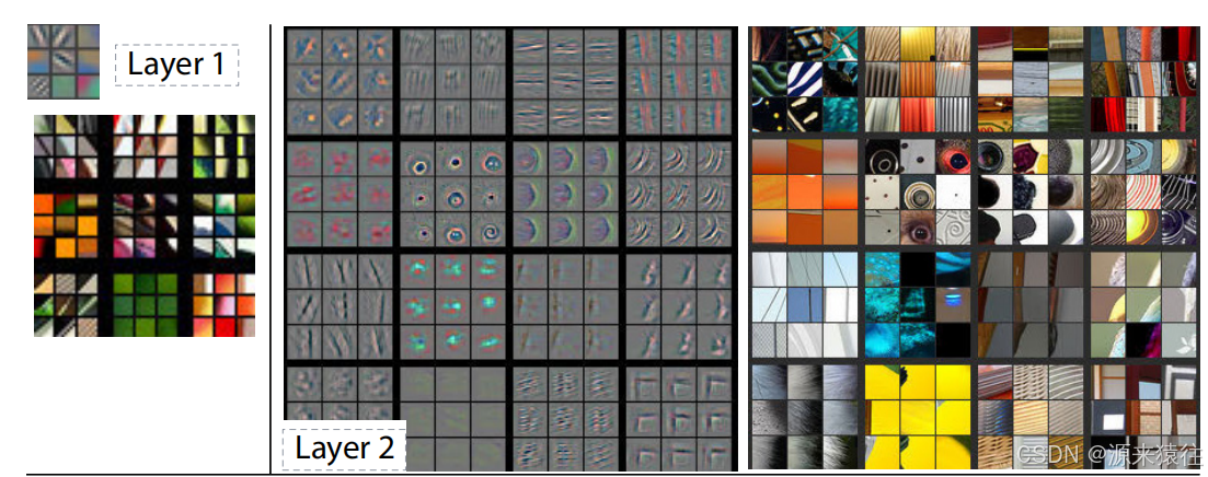 从上述可以看出来特征从简单的边缘、颜色到复杂的纹理、形状,再到完整的物体轮廓,浅层通常负责提取图像的低级特征,如边缘、角点和纹理等,而深层则负责提取更高级别的抽象特征,如物体的部分、整体形状和类别(越高层可以表达的越抽象,比如一张图表达各种复杂的意思和逻辑啥的,所以我们现在的大模型动不动就是上百亿的参数,层级也比较深,表达的内容各种各样),此论文让我们深入理解卷积网络工作原理作出了重大贡献。