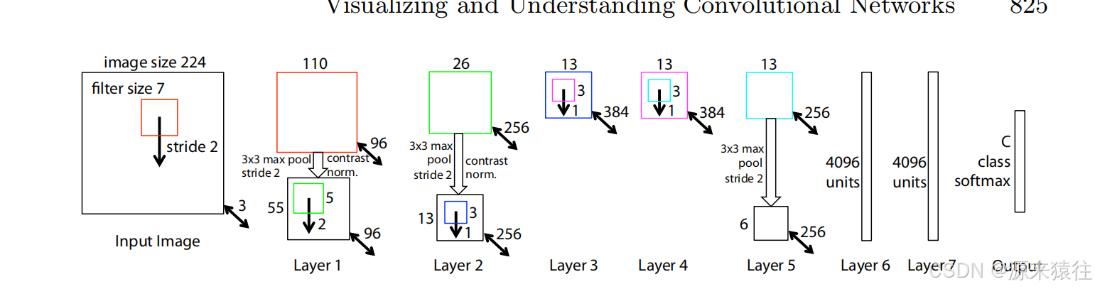 第一层卷积层:从11x11步长3 变为了7x7 步长为2