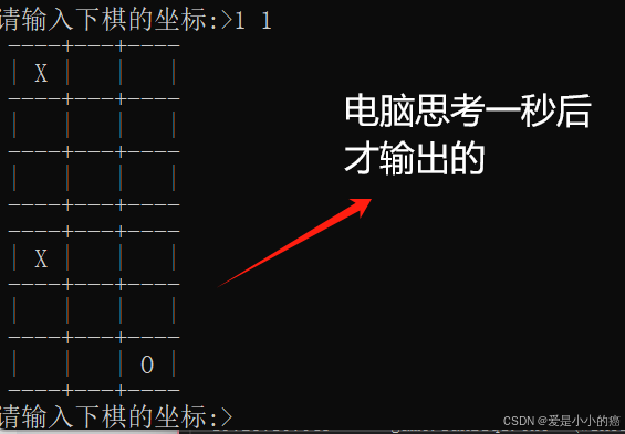(我们可以利用sleep函数添加一个让电脑思考的时间(只是假思考~),这样能让游戏更加带有真实性和参与的感觉。注:需要添加#include