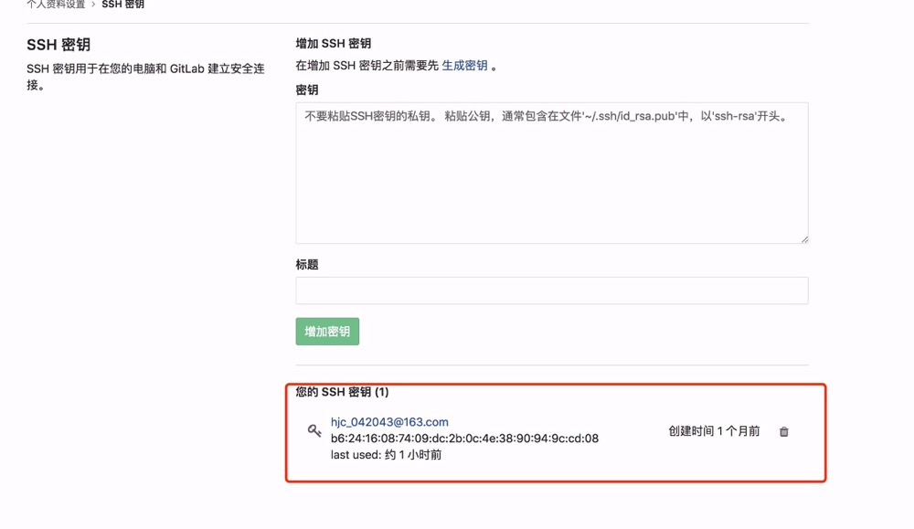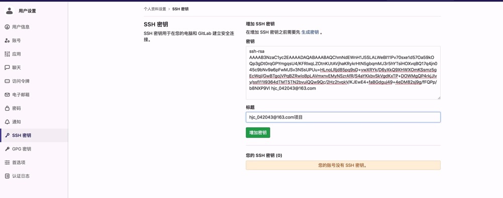 可以将id_rsa.pub文件内容复制出来,然后黏贴到gitlab平台