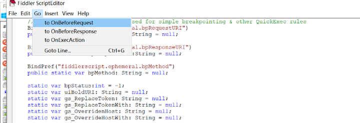 Go中,可以定位到不同方法,OnBeforeRequest、OnBeforeResponse等。
