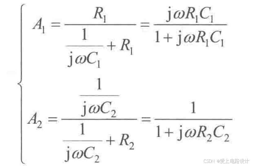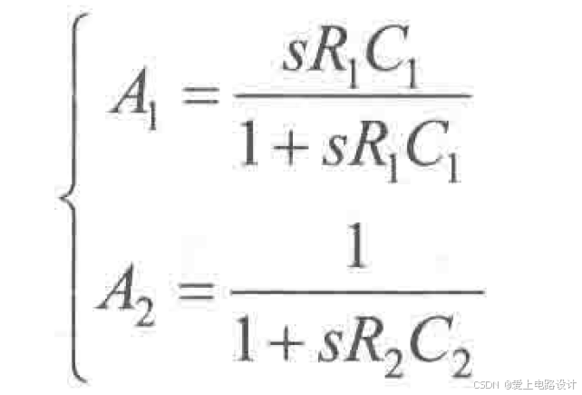 4)通过式2可以看出,A1 代表的高通滤波器有一个零点(0Hz)和一个极点(16.2kHz),A2 代表的低通滤波器只有一个极点(1.6Hz)。A1 和 A2 合成的带通滤波器的阶数为 2 阶。