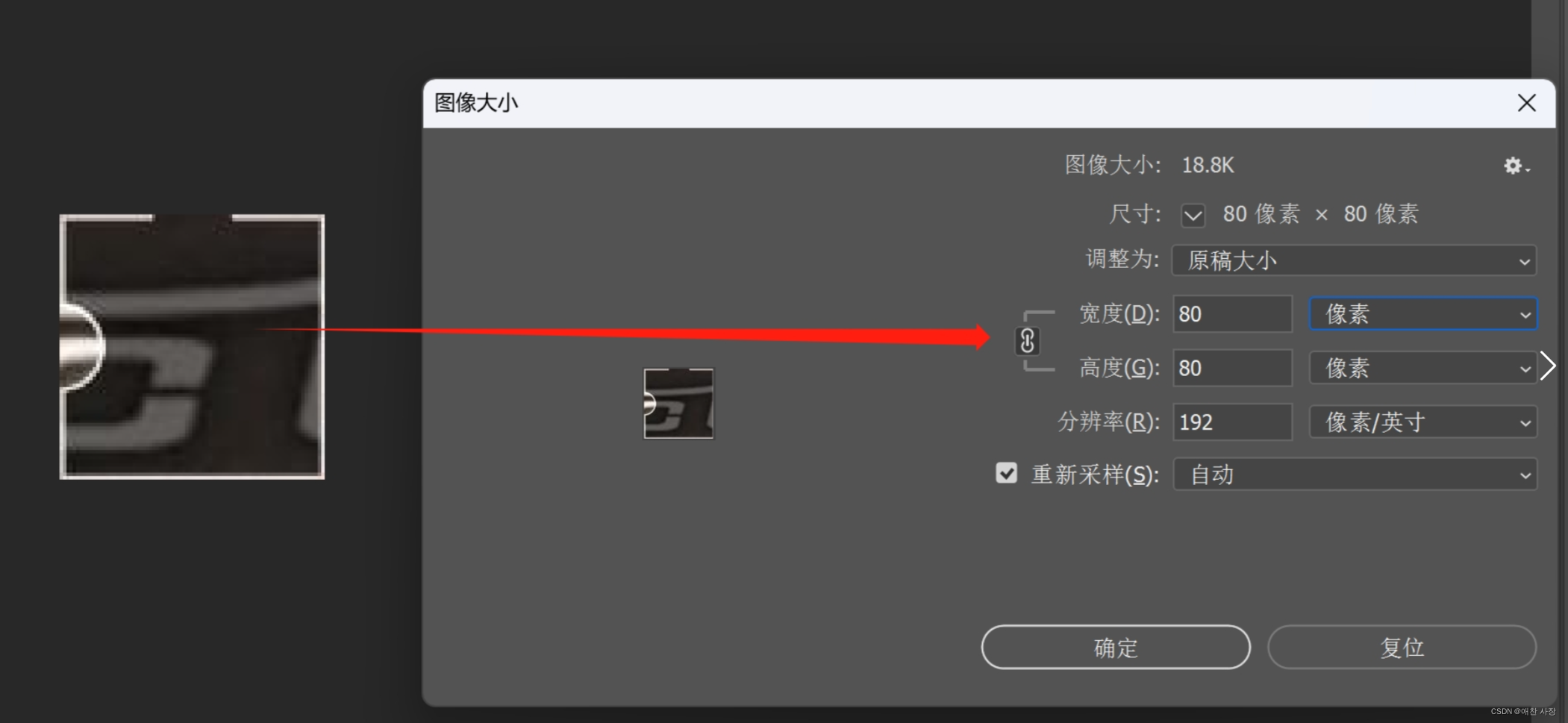 首先我们计算一下缺口的坐标及面积大概有多大,使用PhotoShop打开下载的图片,单独将缺口按照正方形的尺寸抠出来,发现其长宽各是80像素:
