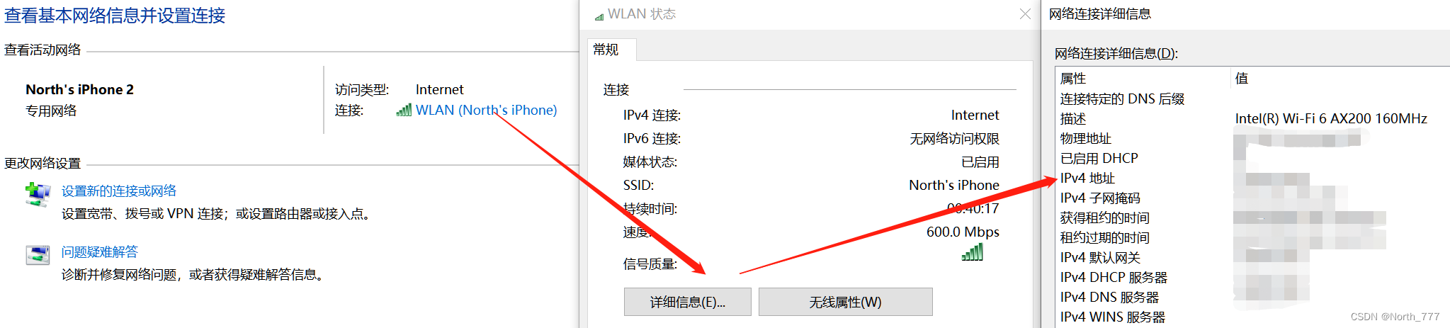 至于本机ip地址,可以从右键“网络”,点击你的网络连接的蓝字,详细信息里面的ipv4地址进行查看,如图所示: