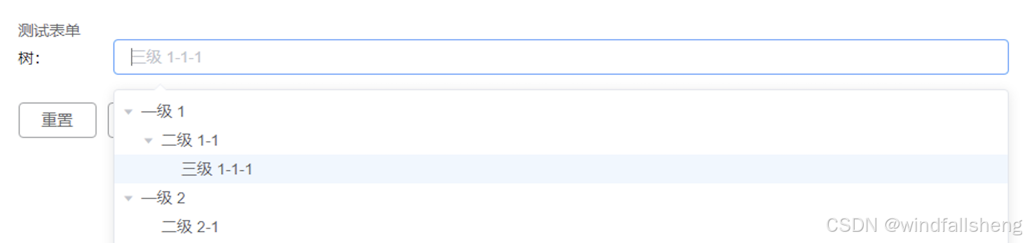 本示例中,部分实现细节或者写法,可根据实际需要调整,树状下拉的实现方式有多种,这只是其中一种,只要符合实际需求就可以。