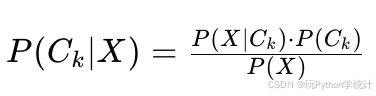 在分类问题中,我们通常想要计算给定观测数据 X 下,某个类别 Ck 的后验概率 P(Ck|X)。根据贝叶斯定理,我们可以将其表示为: