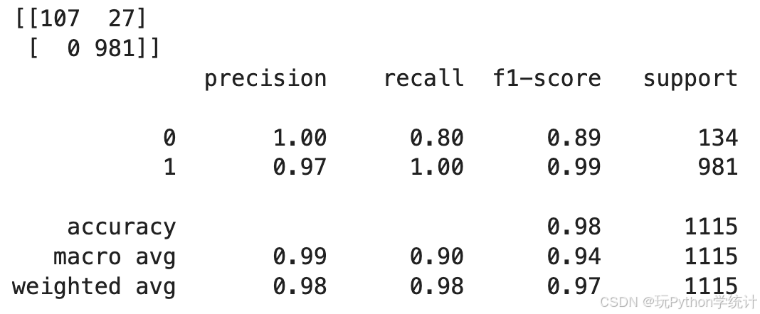 从以上混淆矩阵和分类报告中可以看出,该模型在类别0(垃圾邮件)和类别1(正常邮件)上的预测表现非常好,具有较高的精确度、召回率和F1分数。