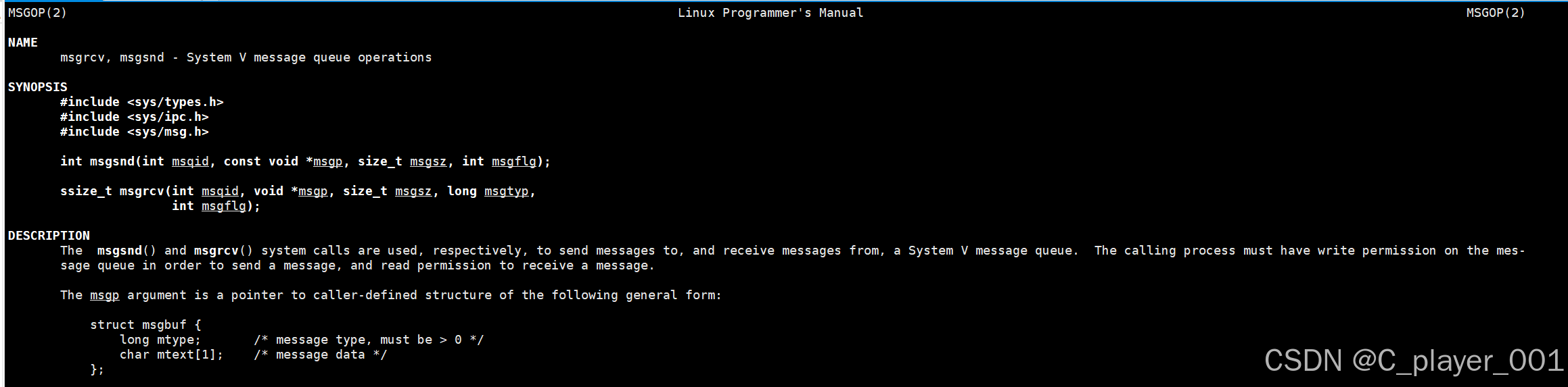 消息队列的发送和接受的数据块都必须是指定格式的结构体。