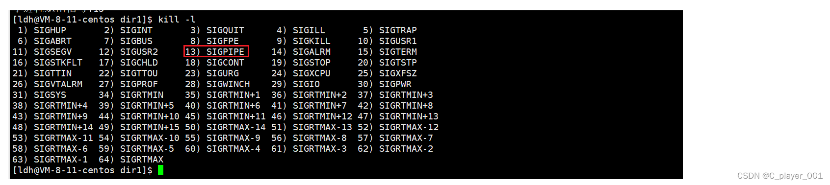 13信号是用于终止读端关闭时继续写入的写端进程的,也就是非法写入管道。