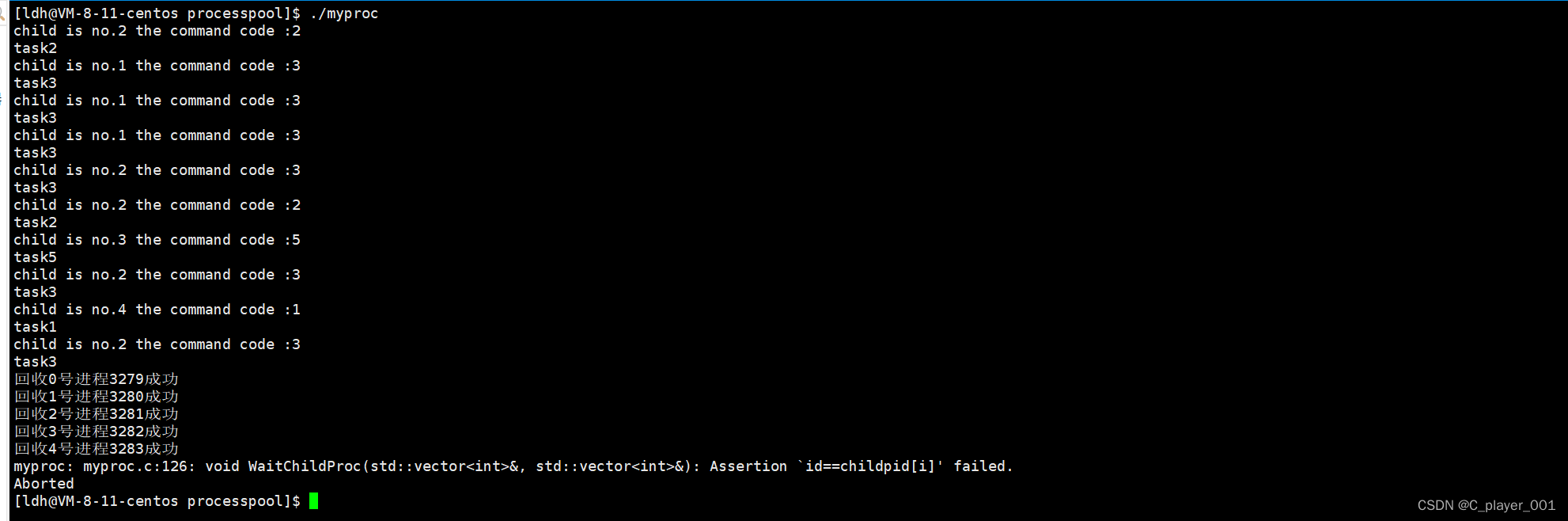 void WaitChildProc(std::vector& childpid,std::vector&fddate)//回收子进程 { for(auto i=0;fddate.size();i++) { close(fddate[i]); pid_t id=waitpid(childpid[i],NULL,0); assert(id==childpid[i]); std::cout<<"回收"<