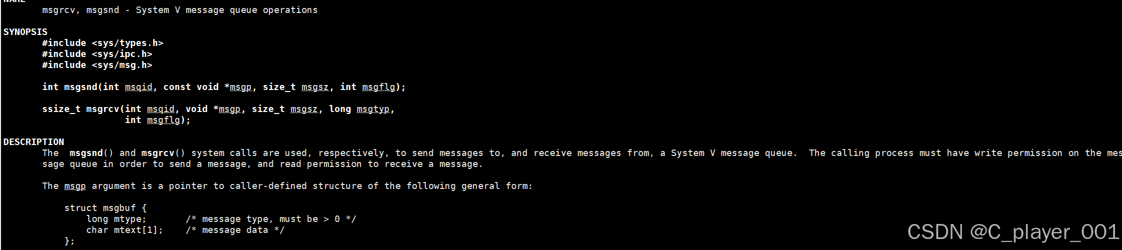 看到这个就接口是否有些熟悉,熟悉的 key 和熟悉的 flag ,由于消息队列是不需要实现指定大小,动态增长,所以就没有了size参数。返回值就是一个msqid