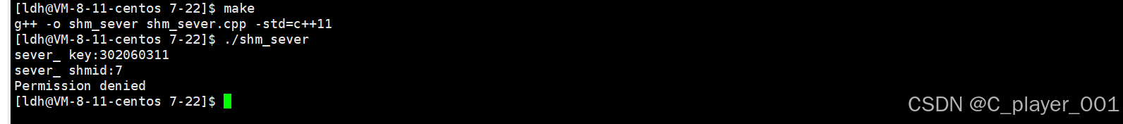 同时由于我们上一次运行程序权限被拒绝导致进程退出了,我们需要在命令来进行资源释放