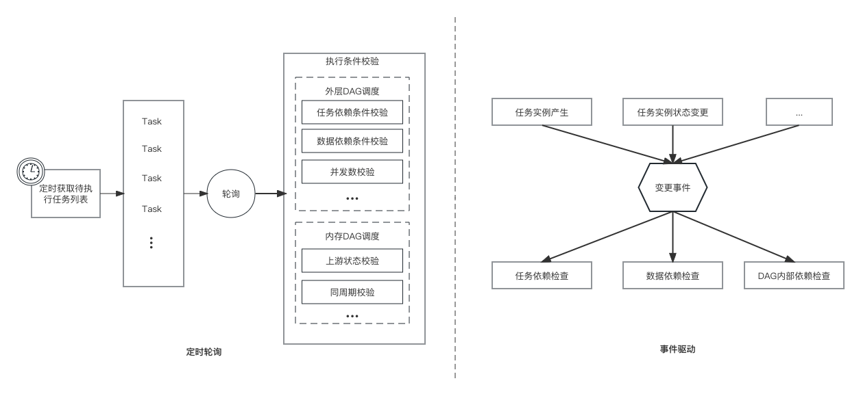 相较传统的定时轮询方式,事件驱动模式在任务依赖条件变更时进行条件计算和校验,避免了遍历耗时和无用计算,提高整体处理性能。