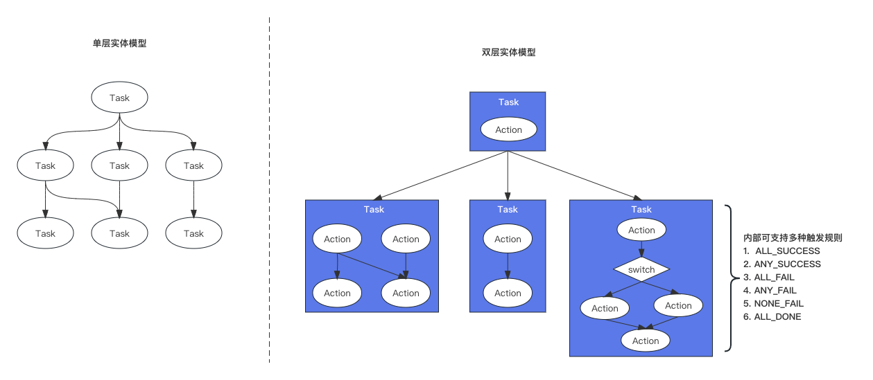 相比单层实体模型,双层模型具有更强的编排能力和灵活性,同时对单个业务的整合和管理也更友好。