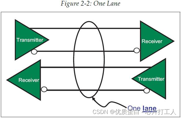 PCIe总线中每个lane都采用差分信号进行传输,包含一对发送差分信号对和一对接收差分信号对这样会导致设备的引脚数增加一倍,但其收益非常明显:提高噪声容限、降低信号电压。