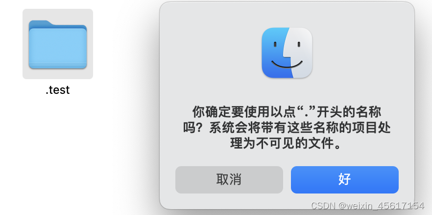 在Mac系统中,想要隐藏任何一个文件或文件夹,只需要在文件名前添加一个 . (英文“点”)即可。