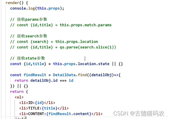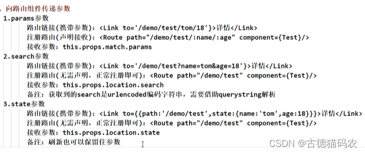 import { Component } from "react"; import PropTypes from "prop-types";//需要安装库 class Person extends Component<{ name: string,age:string,sex:string }> { render() { const {name, age , sex} = this.props; return ( - {name}