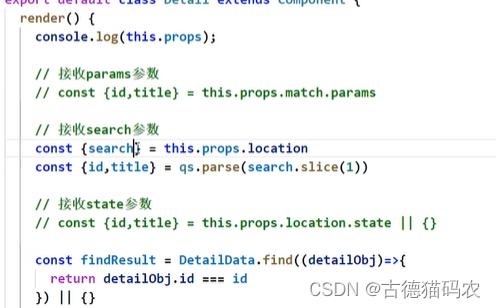 import { Component } from "react"; import PropTypes from "prop-types"; class Person extends Component<{ name: string; age: string; sex: string }> { static propTypes = { name: PropTypes.string.isRequired, age: PropTypes.string.isRequired, sex: PropTypes.string.isRequired, }; static defaultProps = { name: "张三", age: "18", sex: "男", }; render() { const { name, age, sex } = this.props; return ( - {name}