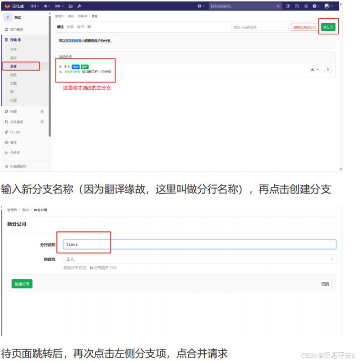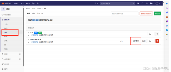 点击左侧列表的分支,即可看到刚才新建的分支文件,再点击新分支,来创