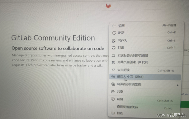 右键点击页面空白处,弹出菜单,点击“翻译为中文