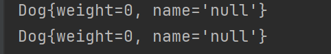dogClass=Dog.class; //获取单个构造方法对象 Constructor> con=dogClass.getDeclaredConstructor(); //构造方法对象实例化,会调用无参构造方法 Object dogObject = con.newInstance(); // 无参构造器实例化,也可以直接用Class对象的newInstance方法,带参就不行了 Dog dog = dogClass.newInstance(); //重写了Dog类的to_String,所以输出:Dog{weight=0, name='null'} System.out.println(dogObject); System.out.println(dog); } }
