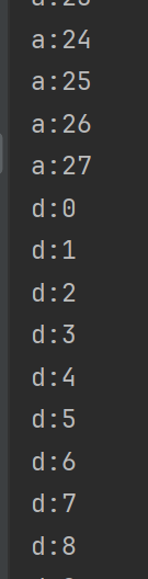 public class Test { public static void main(String[] args) { // 方法1:使用普通方式实现Runnable接口 PrintNumberRunnable runnable = new PrintNumberRunnable(); Thread a = new Thread(runnable, "a"), b = new Thread(runnable, "b"); // 方法2:使用Lambda表达式实现Runnable接口,无需再创建PrintNumberRunnable类 Thread d = new Thread(() -> { for (int i = 0; i < 100; i++) { System.out.println(Thread.currentThread().getName() + ":" + i); } },"d"); a.start(); b.start(); d.start(); } }