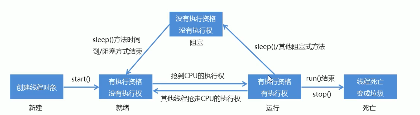 多线程的好处:当一个线程进入阻塞或者等待状态时,其他的线程可以获取CPU的执行权,提高了CPU的利用率。