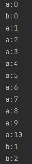 public class Test { public static void main(String[] args) { PrintNumberThread a = new PrintNumberThread ("a"), b = new PrintNumberThread ("b"); a.start(); b.start(); } }
