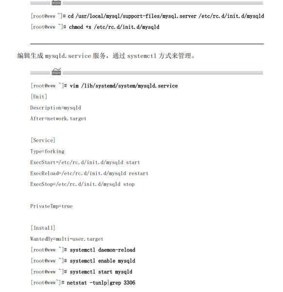将 MySQL添加为 systemd 标准服务,之后方便使用“systemct1”命令进管理。