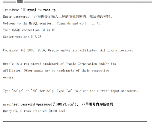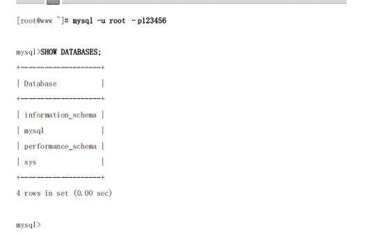 经过安装后的初始化过程,MySQL数据库的默认管理员用户名为“root”,密码为给定的随机密码。以root 用户登录本机的 MySQL数据库,可以执行以下操作。