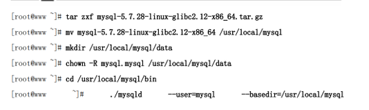 二进制安装的版本采用跟上面编译安装的版本一样 MySQL 5.7.28。首先需要下载该软件包或者提前上传,然后再解压进行配置。