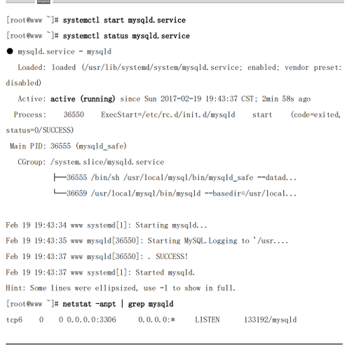这样,以后就可以使用 systemct1 工具或直接调用/etc/init.d/mysqld 脚本来控制MySQL 数据库服务了。例如,若要启动 mysqld服务,并查看其运行状态,可以执行以下操作。