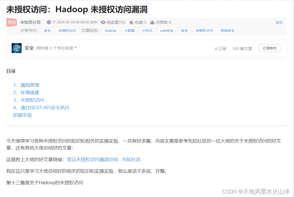 由于实际项目是政府部门的内网环境,发现Hadoop存在未授权访问漏洞,就要解决,甲方至上
