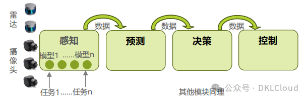 针对独立任务的若干小模型和大量基于规则的指令构成了每个模块,不同模块之间通过接口传递数据,能够实现完整决策链条但算法网络之间彼此断开。
