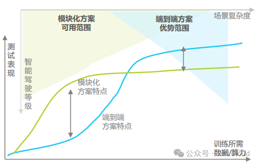 数据驱动,智能化程度高,响应速度快,驾驶体验好,有望在复杂环境实现高阶自动驾驶。
