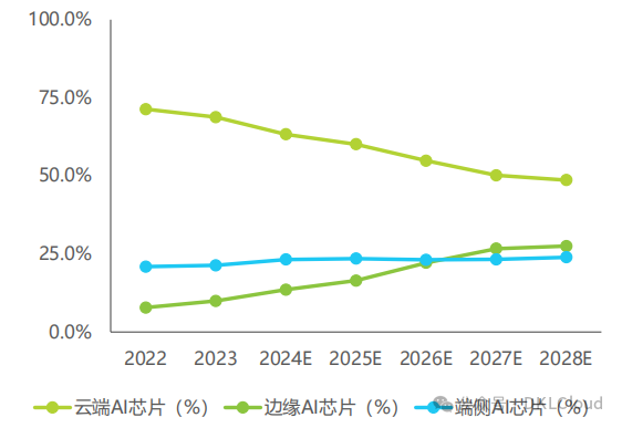 伴随自动驾驶、智慧医疗、智能家居、工业互联网等场景,AI算法与算力调度将从云端逐步下放到边缘侧和端侧。预计2028年云端、边缘侧、端侧AI芯片的比例将分别达到48.6%、27.5%与23.9%,面对大量、复杂任务如何进行与云端的无缝高效的分工配合,是当前边端模型需要解决的关键问题。