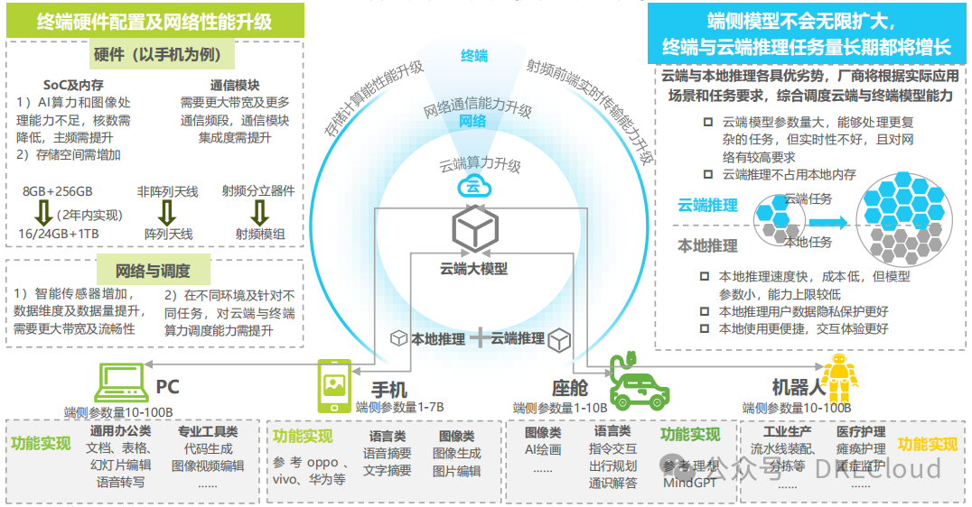 终端模型需与云端模型协同提供服务,存、算、网同步升级。
