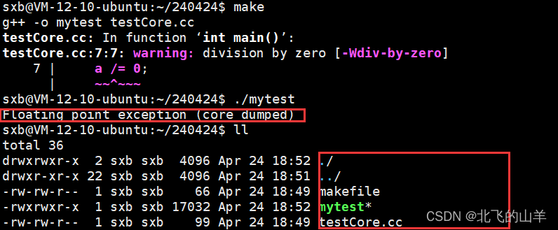 执行该条指令,运行我的可执行程序,发生除0错误,这次就会形成core dump文件了。