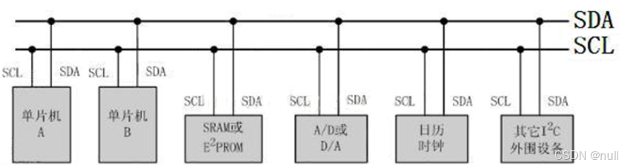 - 串行数据线(SDA):用于传输数据的双向线路。