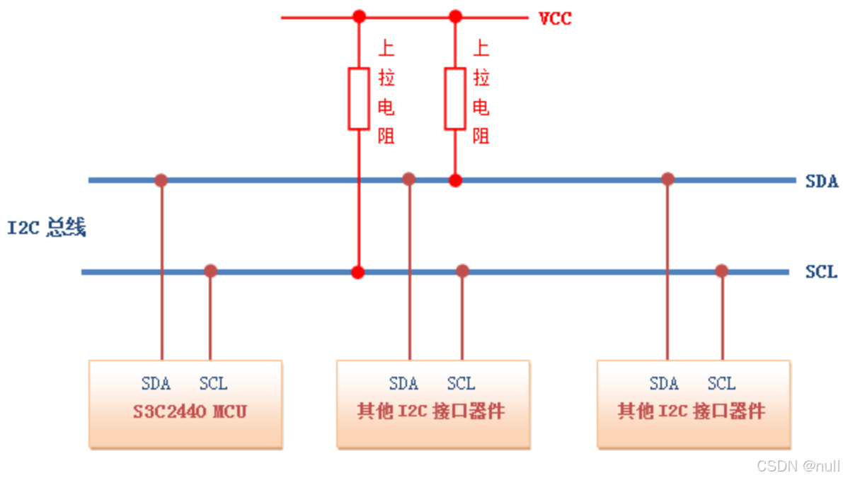 - 串行时钟线(SCL):用于同步数据传输的时钟信号线。