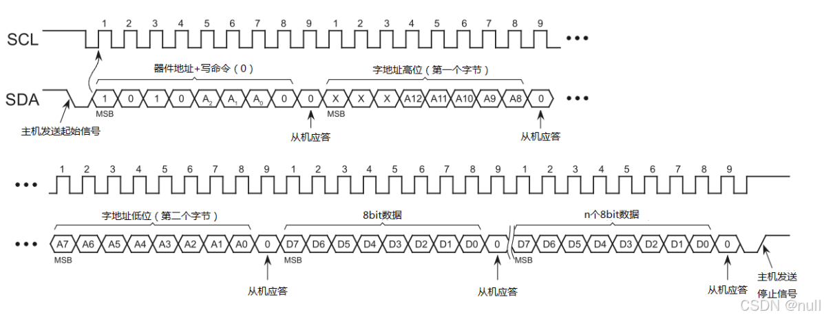 数据+ACK:当主机收到应答信号时,发送要访问从机的那个地址, 继续等待从机的应答信号