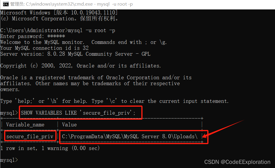 SHOW VARIABLES LIKE 'secure_file_priv';