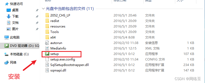 1.打开一台server 2016,并插入SQL server 镜像 安装