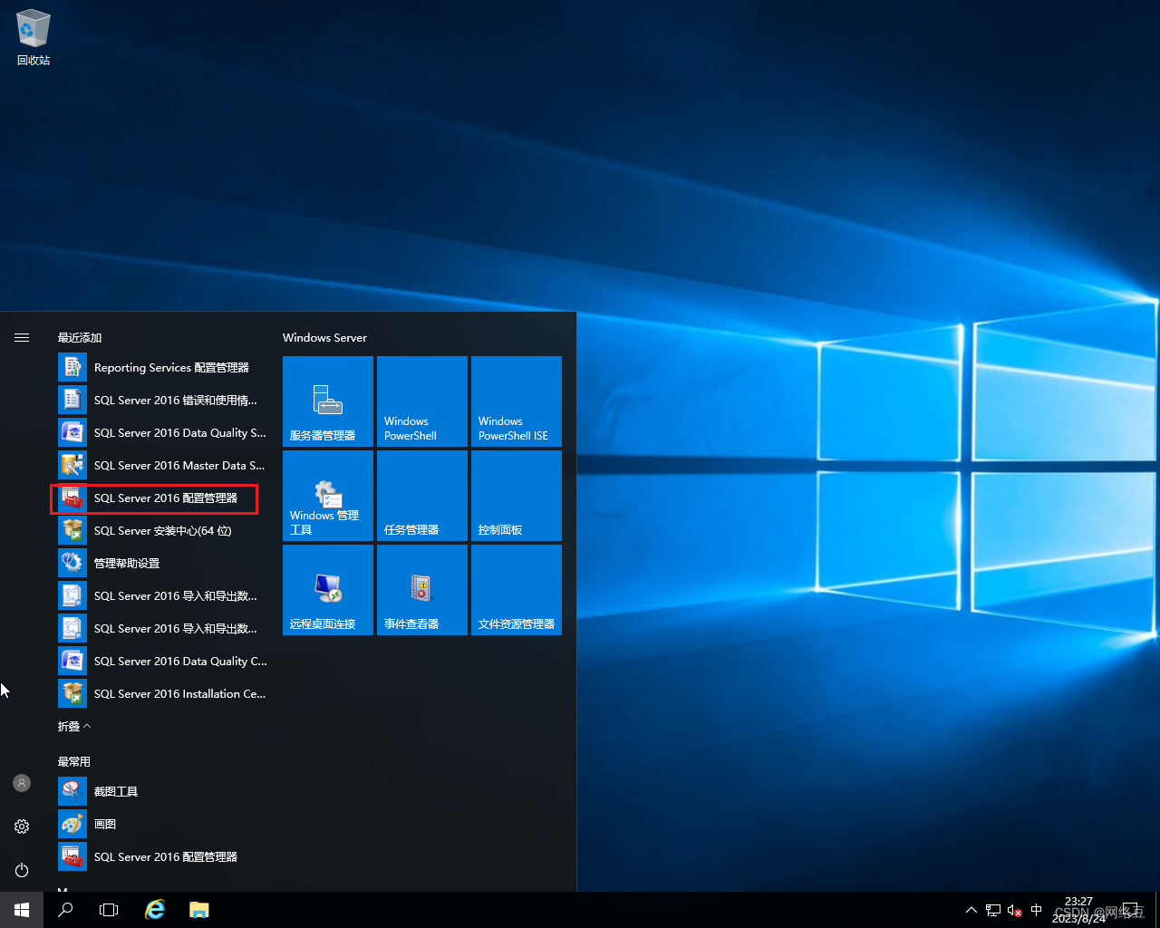 方法二:使用SQL Server配置管理器启动或停止数据库服务(常用)