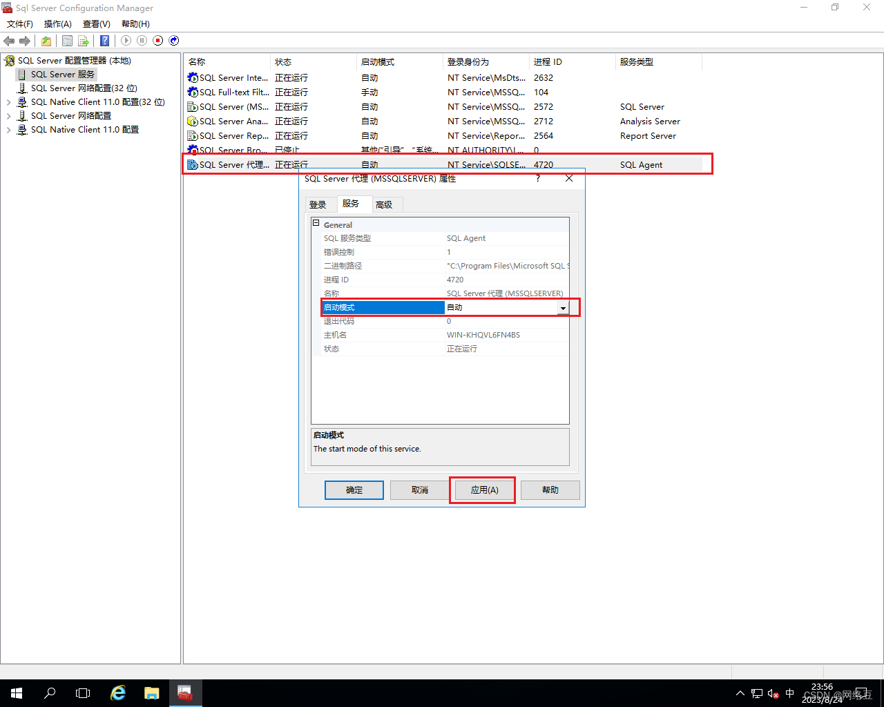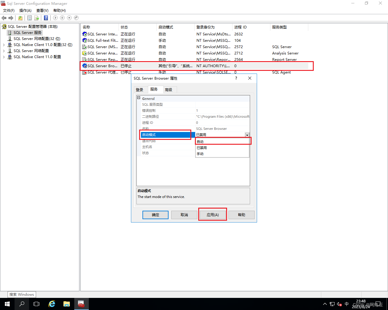 启动和停止数据库服务(设置SQL Server (MSSQLSERVER)服务设置为自动)