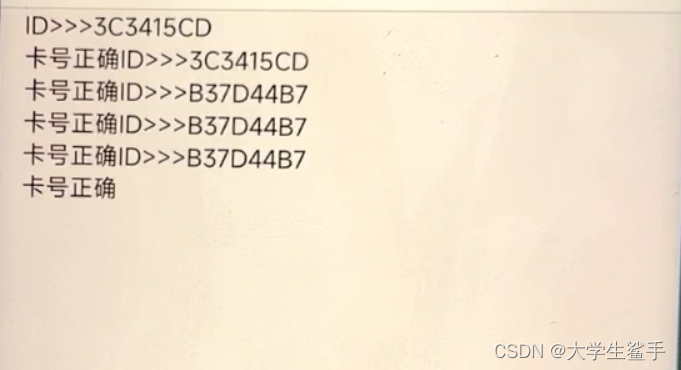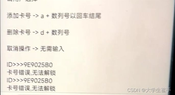 之后再次将校园卡放到RC522模块上时候, 就无法解锁, 卡号错误。