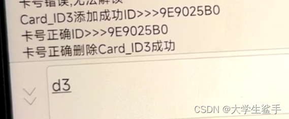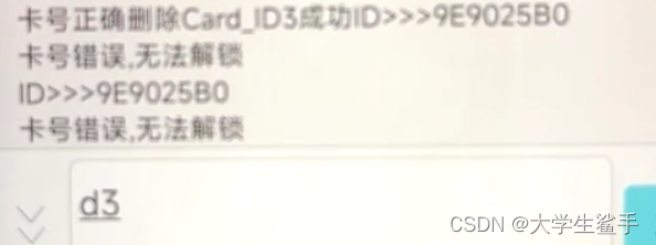 如果想从系统中删除掉第几个ic卡可以输入d+数字(也就是序列号)。